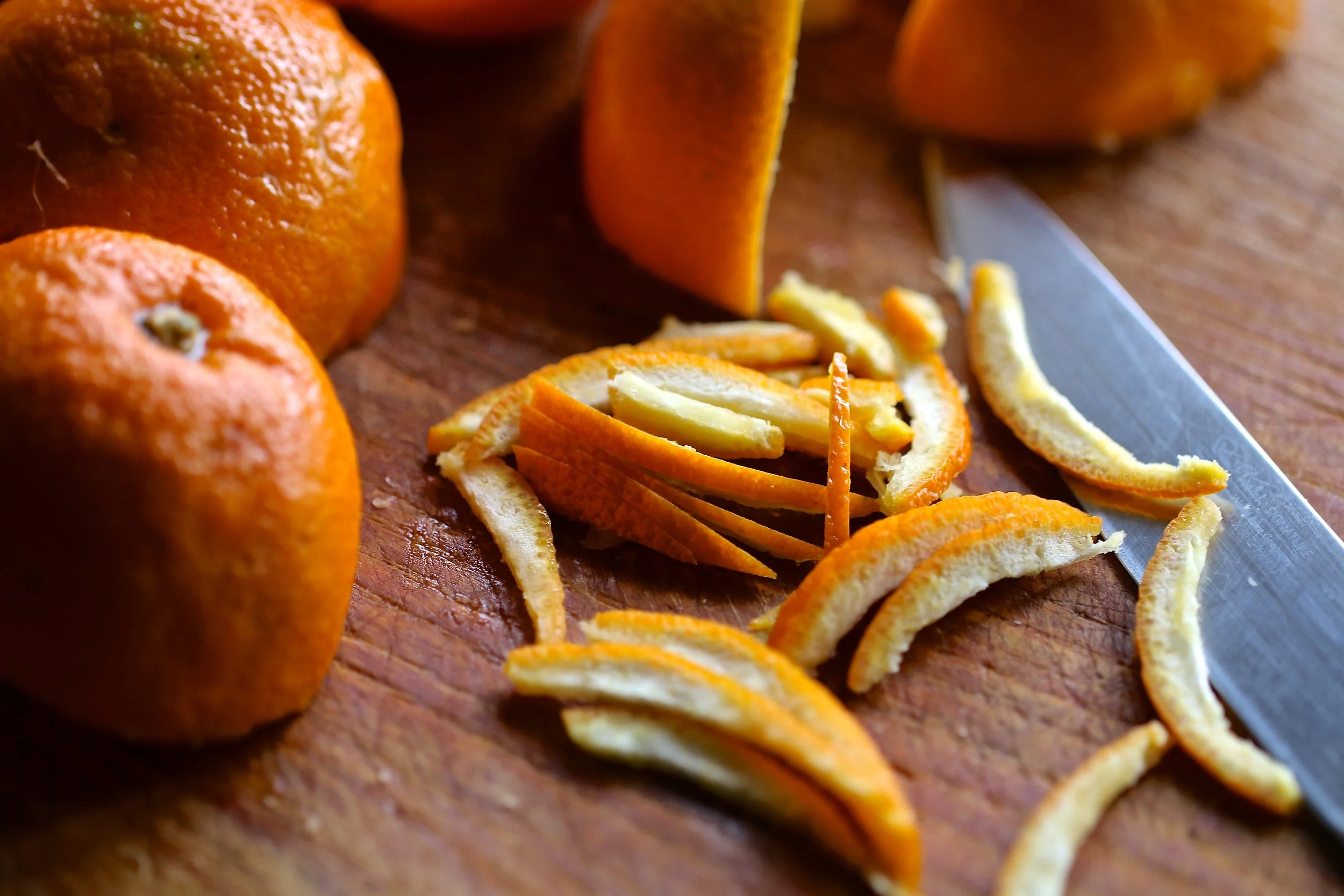If you are not using organic oranges, scrub them in hot water to remove any waxy residue.